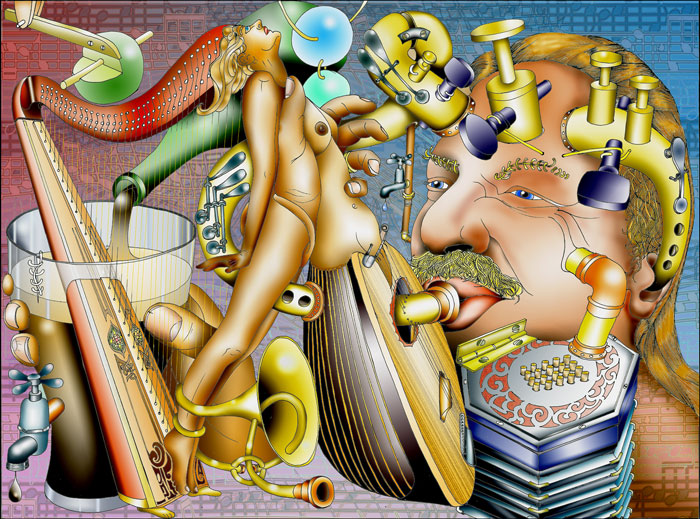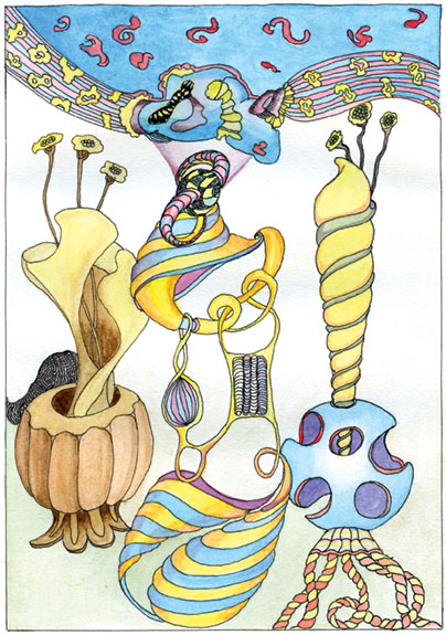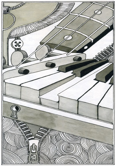 Squidge is an artist and musician concerned with the art and practice of improvisation. He makes many of his own instuments, paints and illustrates the music he plays and makes hand made books.